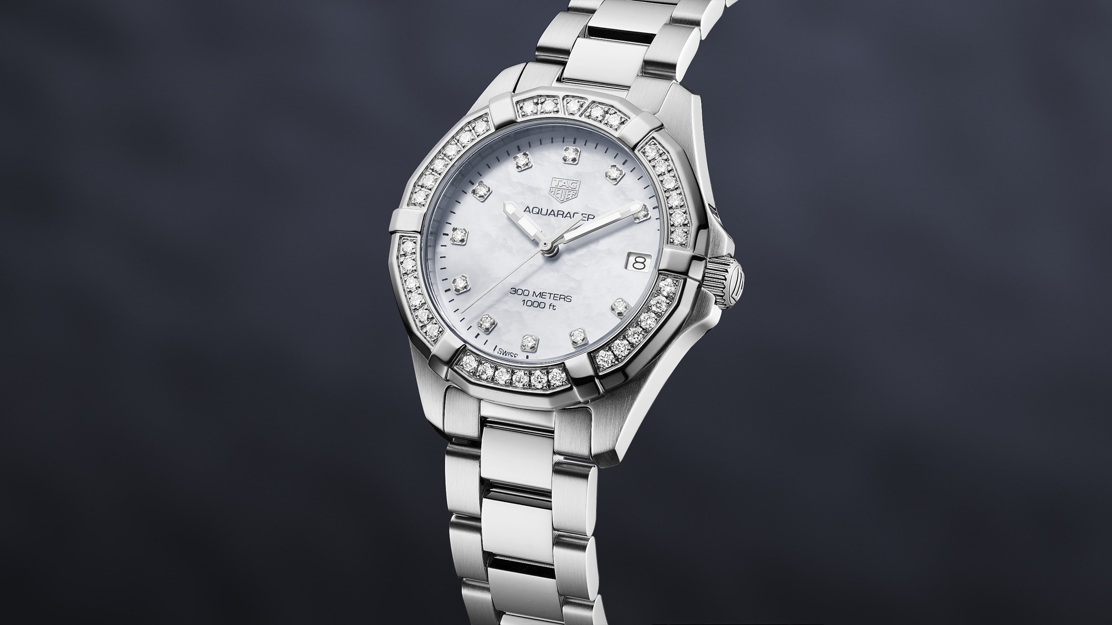 Quartz, 32 mm, Steel WBD1315.BA0740Dive into elegance in a 46 diamonds (0.70 carat). This Aquaracer Lady with precision quartz movement and a white mother-of-pearl dial. Extremely elegant, yet with all the essential characteristics of a professional sports watch.