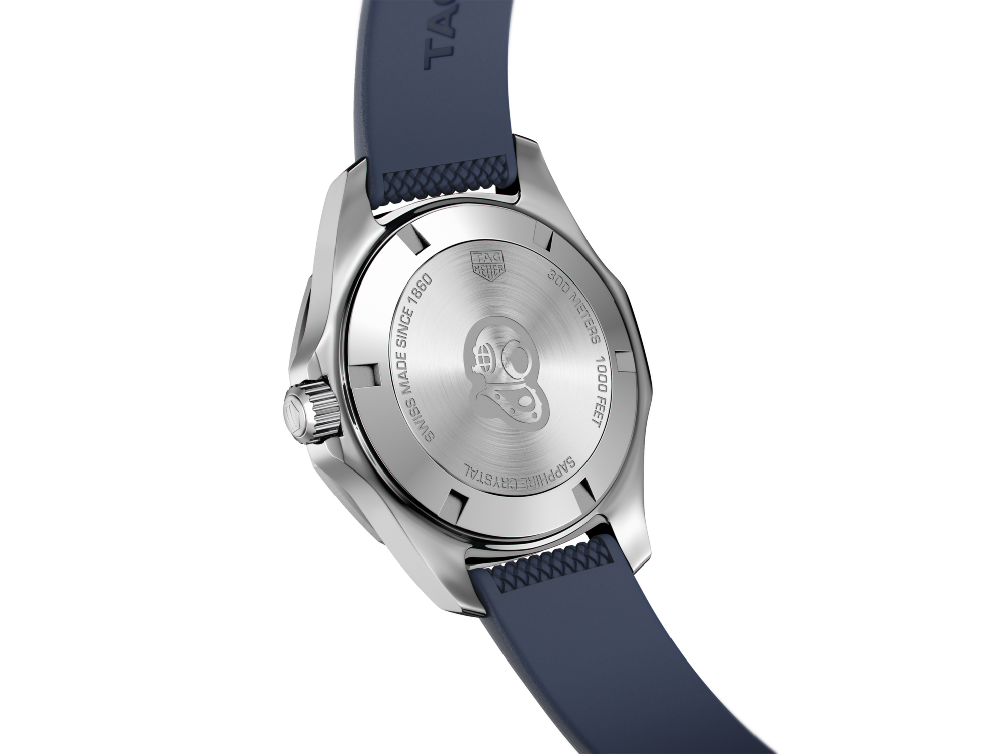 The screw-down winding crown is adorned with the TAG Heuer logo. The stunning turning bezel houses a flat sapphire crystal that is antiglare-coated and highly resistant.