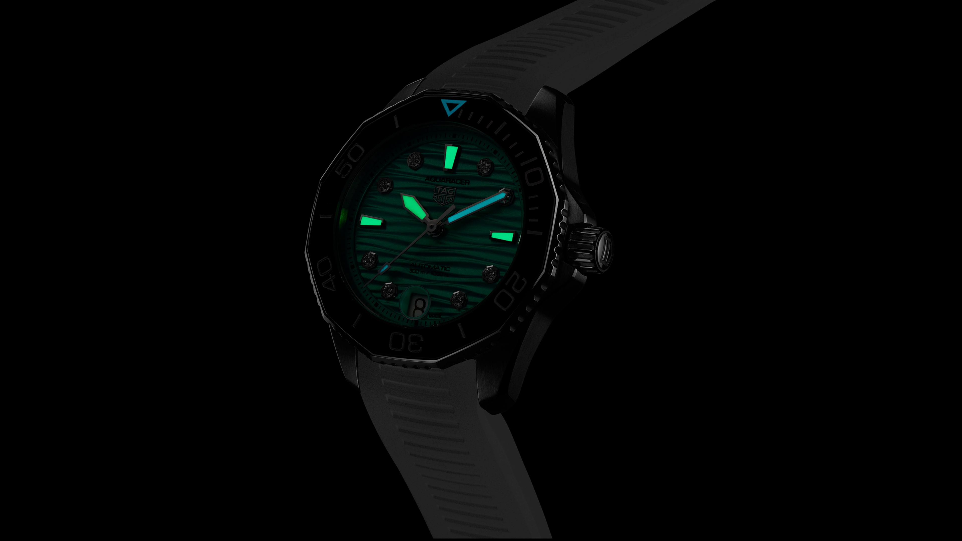 Automatic, 36 mm, Steel WBP231K.FT6234With its striking color, this TAG Heuer Aquaracer delivers as a heavy-duty diver while evoking the colors of the sea. The easily adjustable white band draws the perfect contrast to the deep turquoise dial. Exclusively available on TAGHeuer.com.