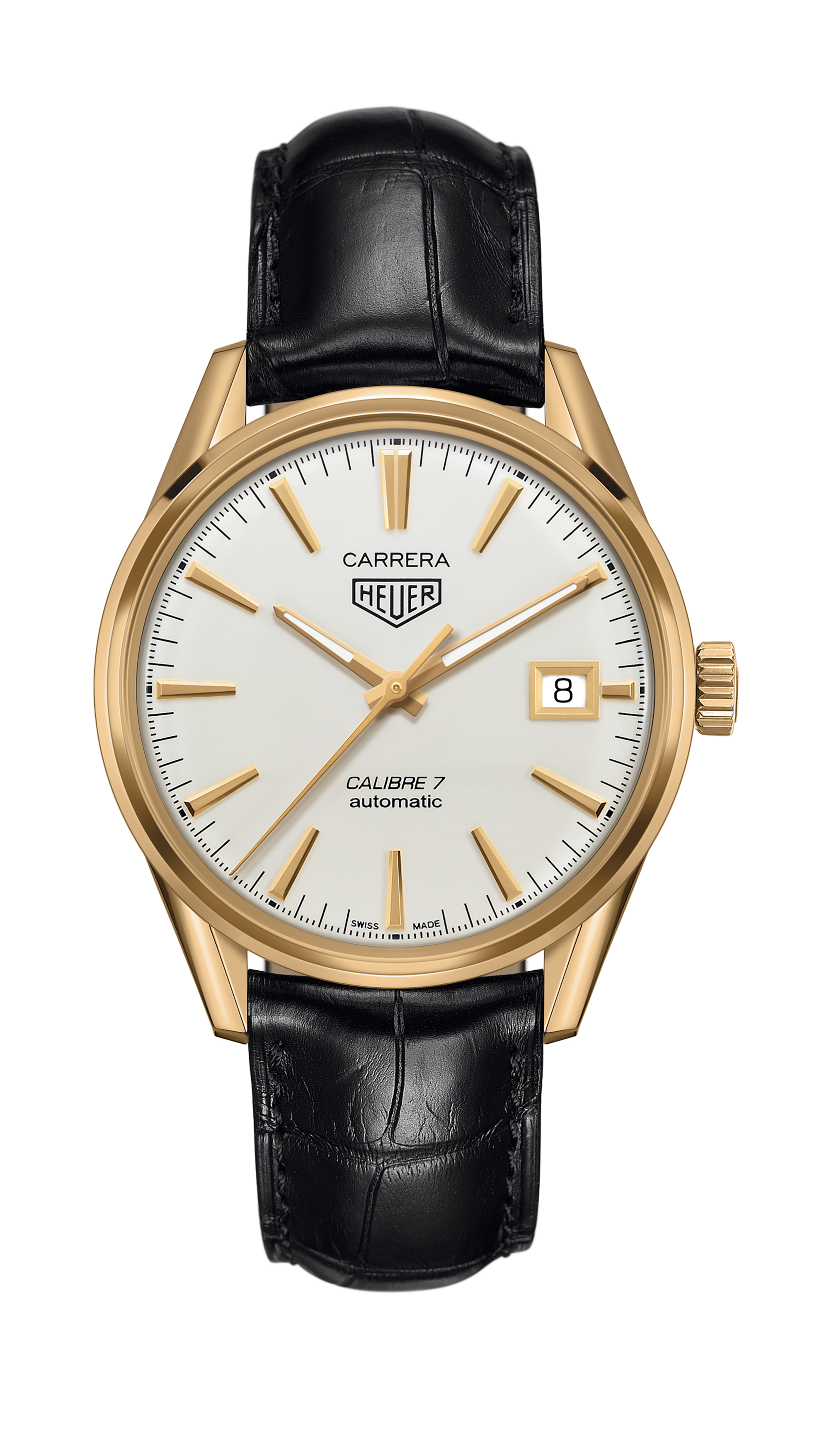 Swiss-made, this bold TAG Heuer Carrera is an aesthetic 39 mm watch. This model features a Gold Plated case and a Calibre 7 Automatic movement.