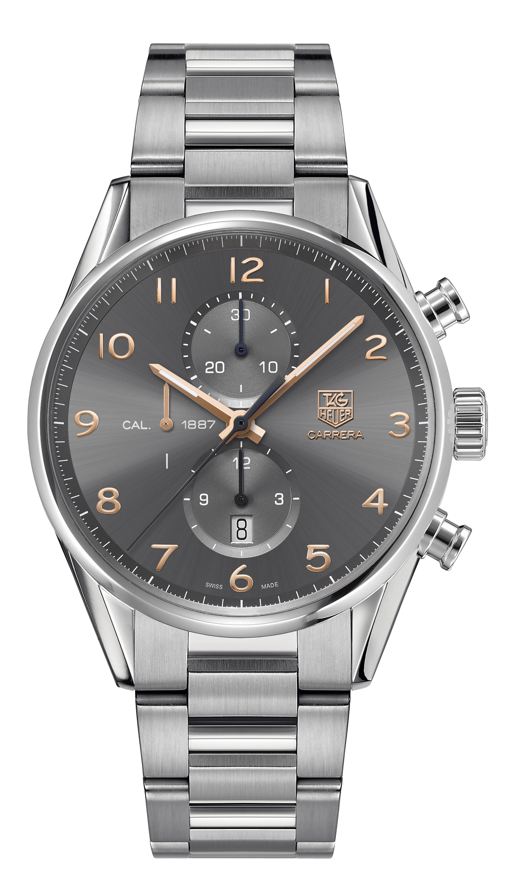 Swiss-made, this bold TAG Heuer Carrera is an aesthetic 43 mm watch. This model features a Steel case and a Calibre 1887 Automatic movement.
