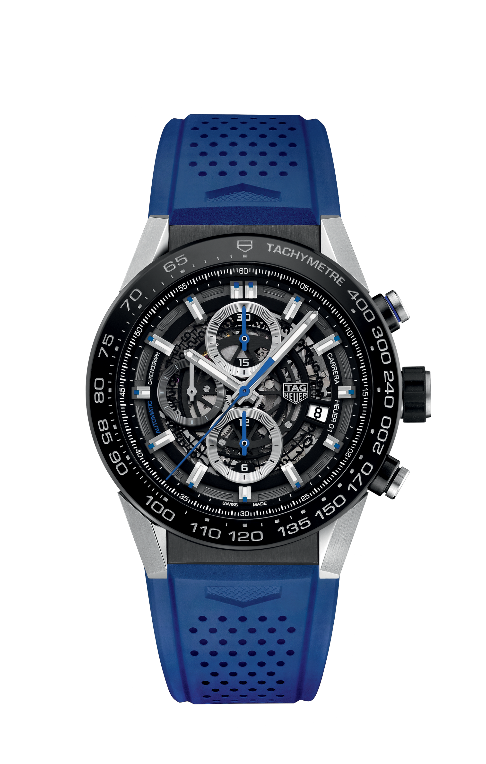 Swiss-made, this bold TAG Heuer Carrera is an aesthetic 43 mm watch. This model features a Steel Black PVD case and a Calibre Heuer 01 Automatic movement.