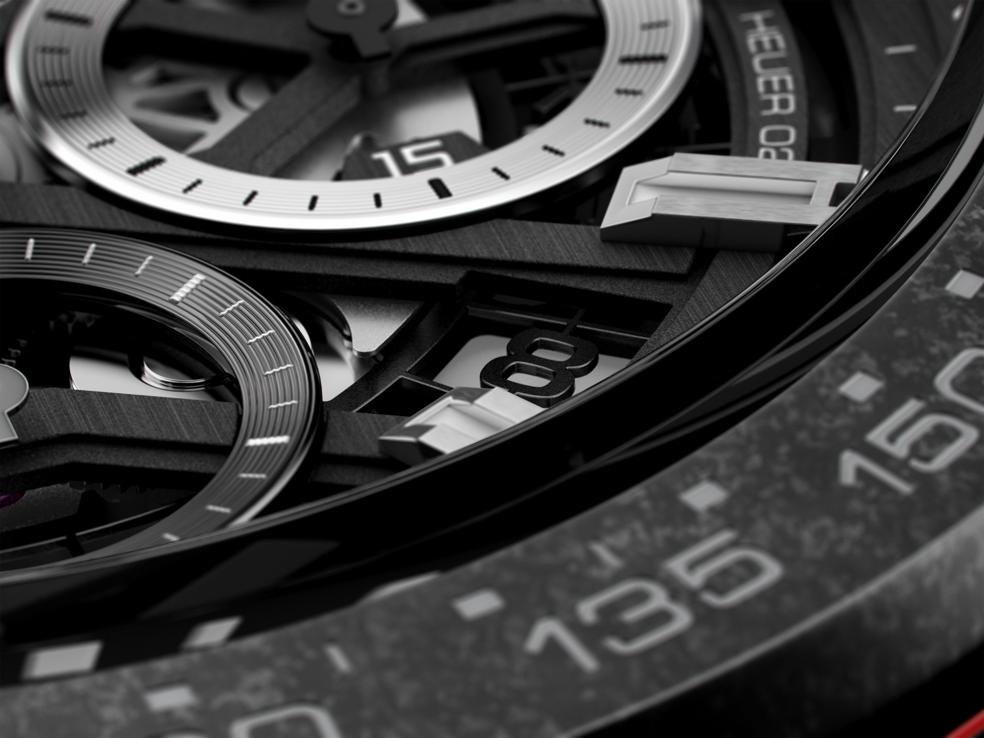 A black TAG Heuer Carrera built with the leading-edge materials of motor-sports: super-resistant carbon fiber for the tachymeter bezel and the iconic TAG Heuer Carrera lugs. Black PVD stainless steel is used for the 43mm case. Inside, the manufacture movement Heuer 02, with a stunning 80 hours power reserve.