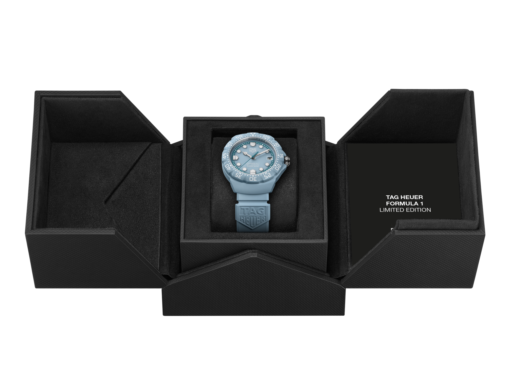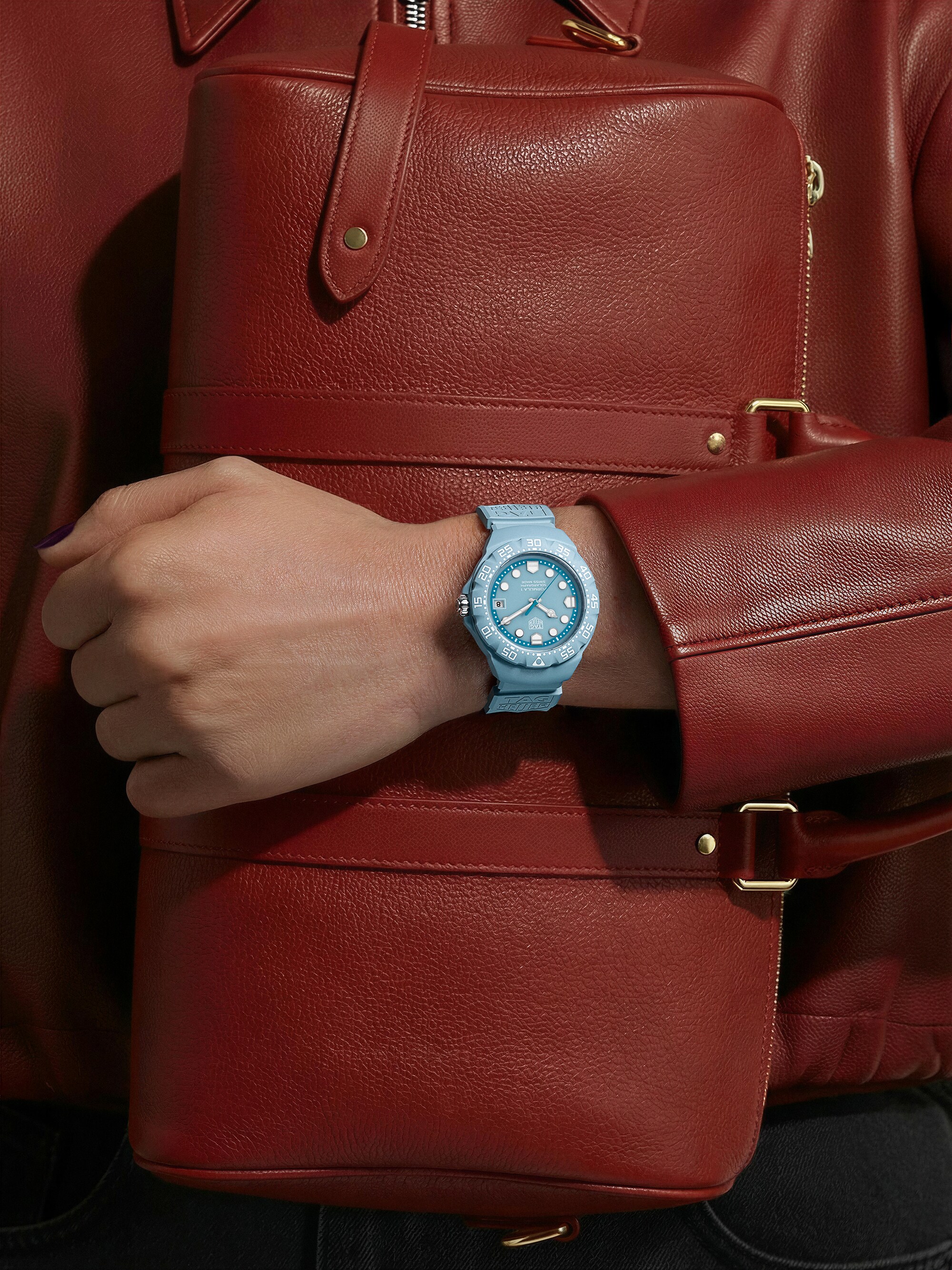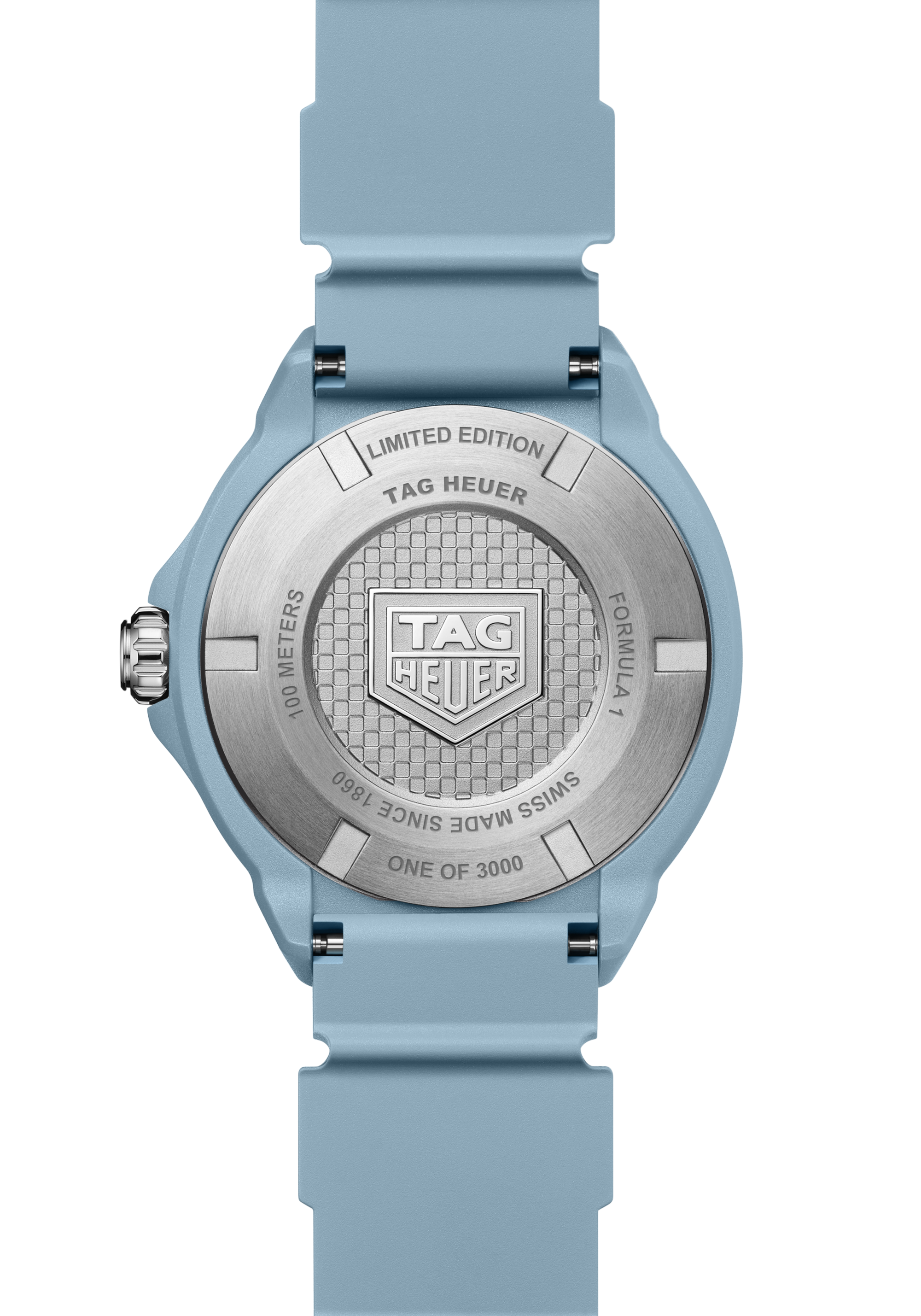 The TAG Heuer Formula 1 Solargraph timepiece blends bold color with lightweight performance. Its TH-Polylight 38 mm case ensures durability while remaining comfortable for everyday wear. The pastel blue dial features rhodium-plated applied indexes and signature shield-shaped markers for excellent legibility. A bi-directional TH-Polylight bezel reinforces the collection’s dynamic design. Inside, the Solargraph Calibre TH50-00 converts natural and artificial light into energy, delivering reliable precision and extended autonomy with minimal maintenance.