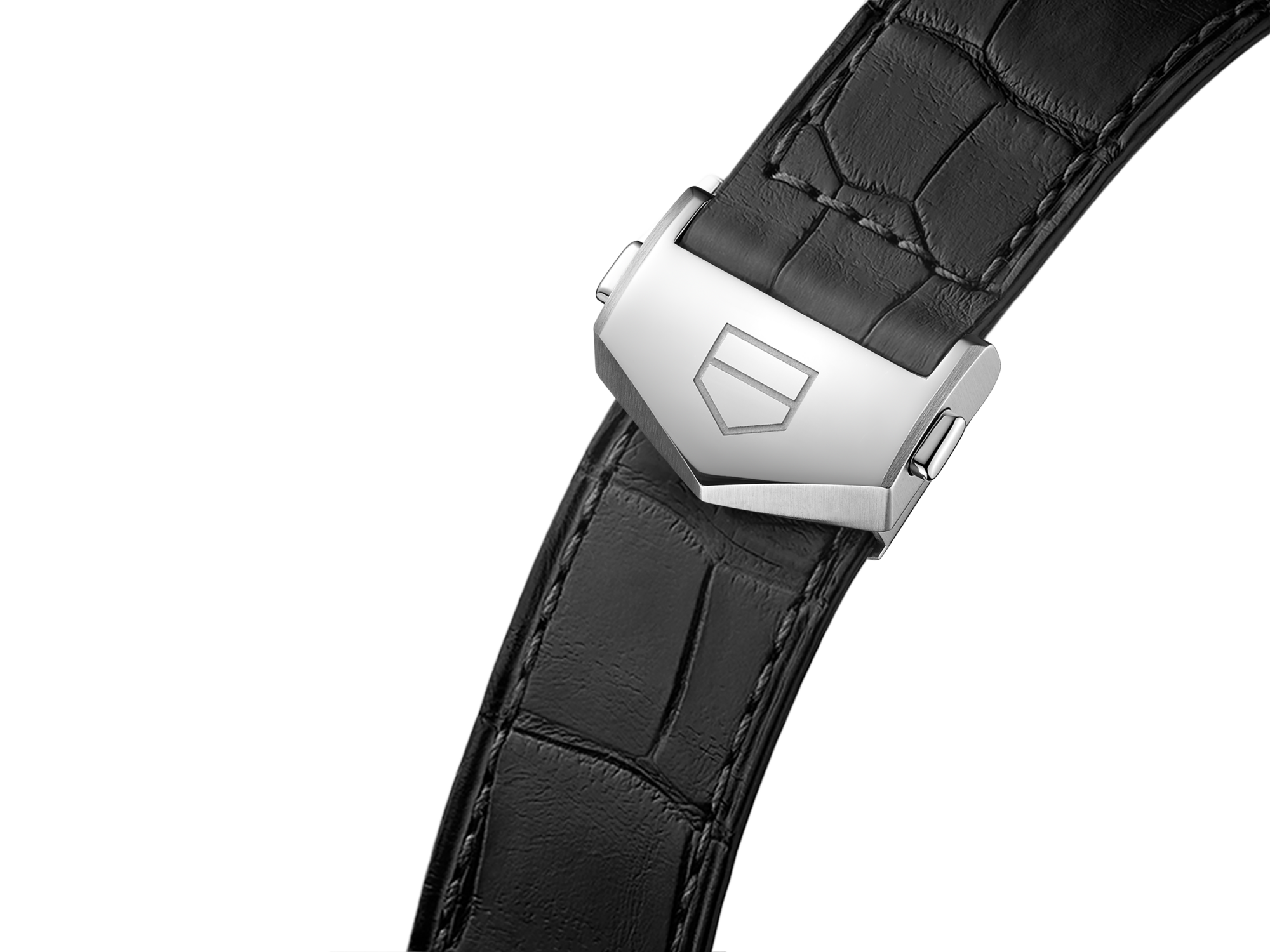Contrasting with the dial, the black alligator strap is secured safely thanks to a steel folding clasp with applied TAG Heuer logo and double safety push buttons.