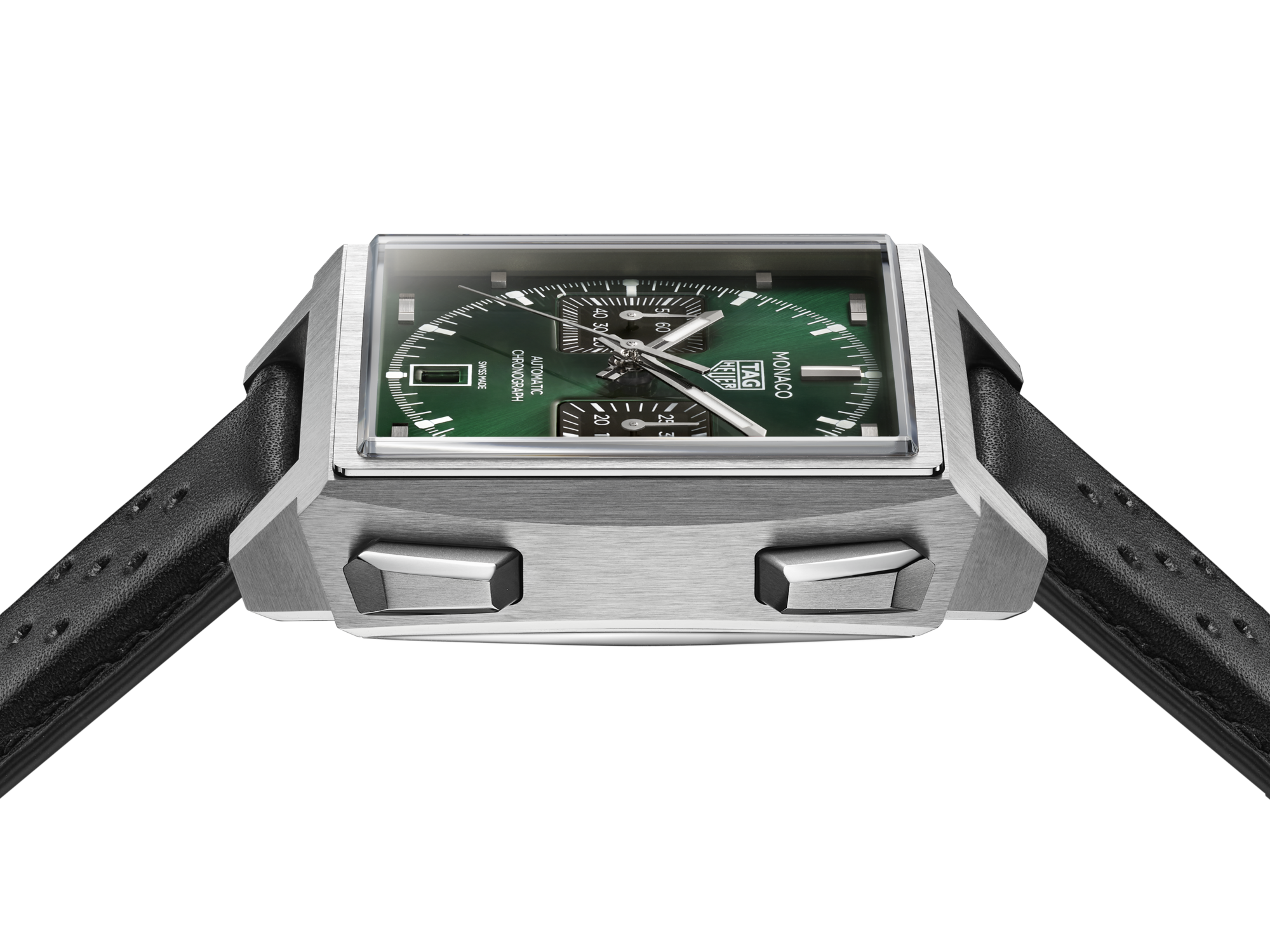 La esfera verde lacada con efecto "rayos de sol" juega con la luz cambiante, complementada por contadores negros opalinos para crear un sutil contraste. Los índices y agujas rodiados con Super-LumiNova® blanca garantizan una legibilidad óptima, mientras que la ventanilla de calendario angulada a las 6 confiere un equilibrio moderno a este diseño emblemático.