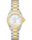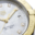 Le cadran est en nacre blanche. Le bracelet à trois rangs alternant acier poli brossé et plaqué or 18 carats est léger et fluide, accompagnant en douceur chaque mouvement du poignet.