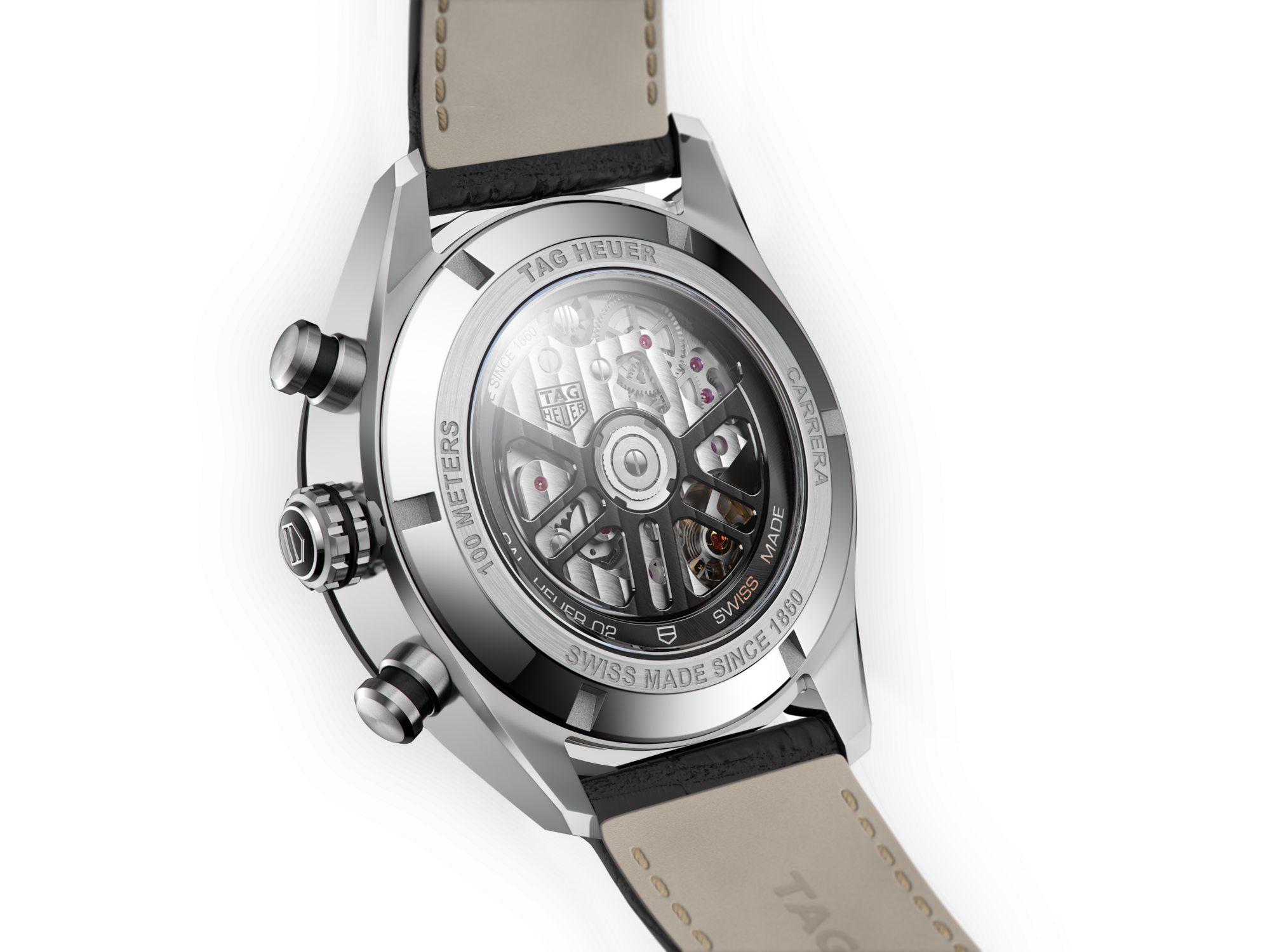 Performance et allure se conjuguent dans cette TAG Heuer Carrera de caractère, qui associe la précision horlogère suisse à un style affirmé et racé.