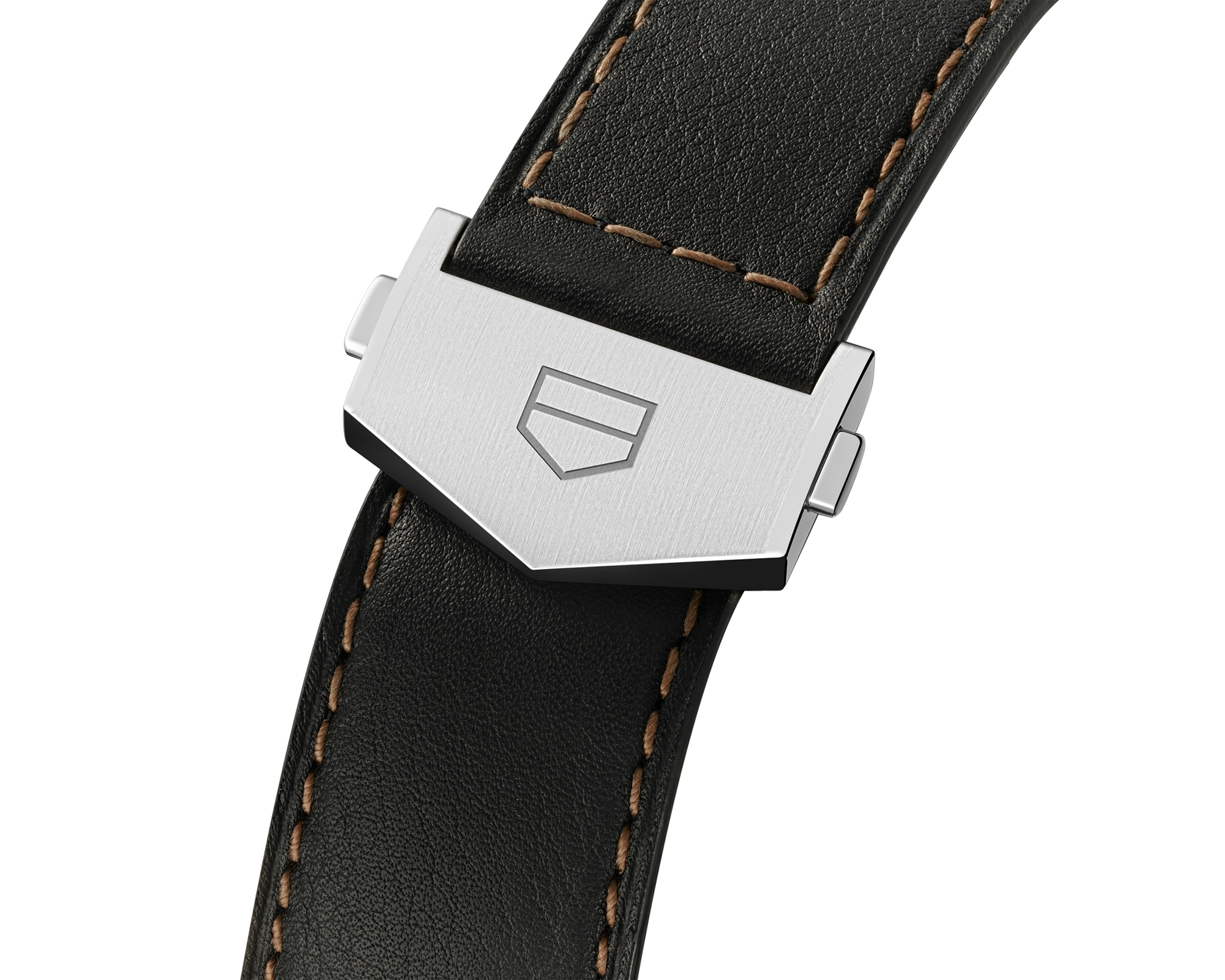 Disponible dans le monde entier, cette édition spéciale présente un bracelet en cuir de veau noir doté d'une boucle déployante en acier et rehaussé de surpiqûres contrastantes.