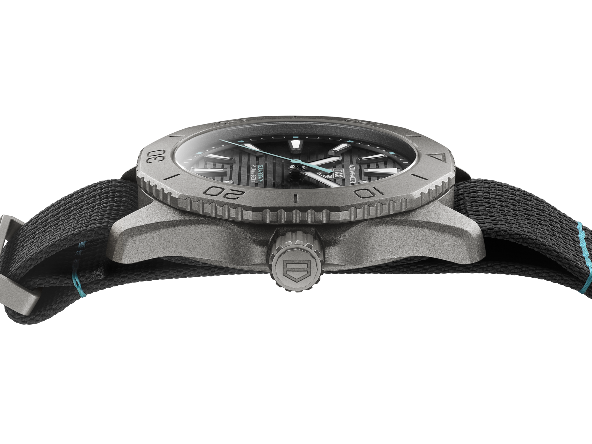 Engineered for the elements, this 40 mm TAG Heuer Aquaracer Professional 200 Solargraph fuses extreme resilience with a solar-powered movement. Designed for outdoor performance, its titanium build and glacier-inspired accents speak to those who thrive beyond the edge.