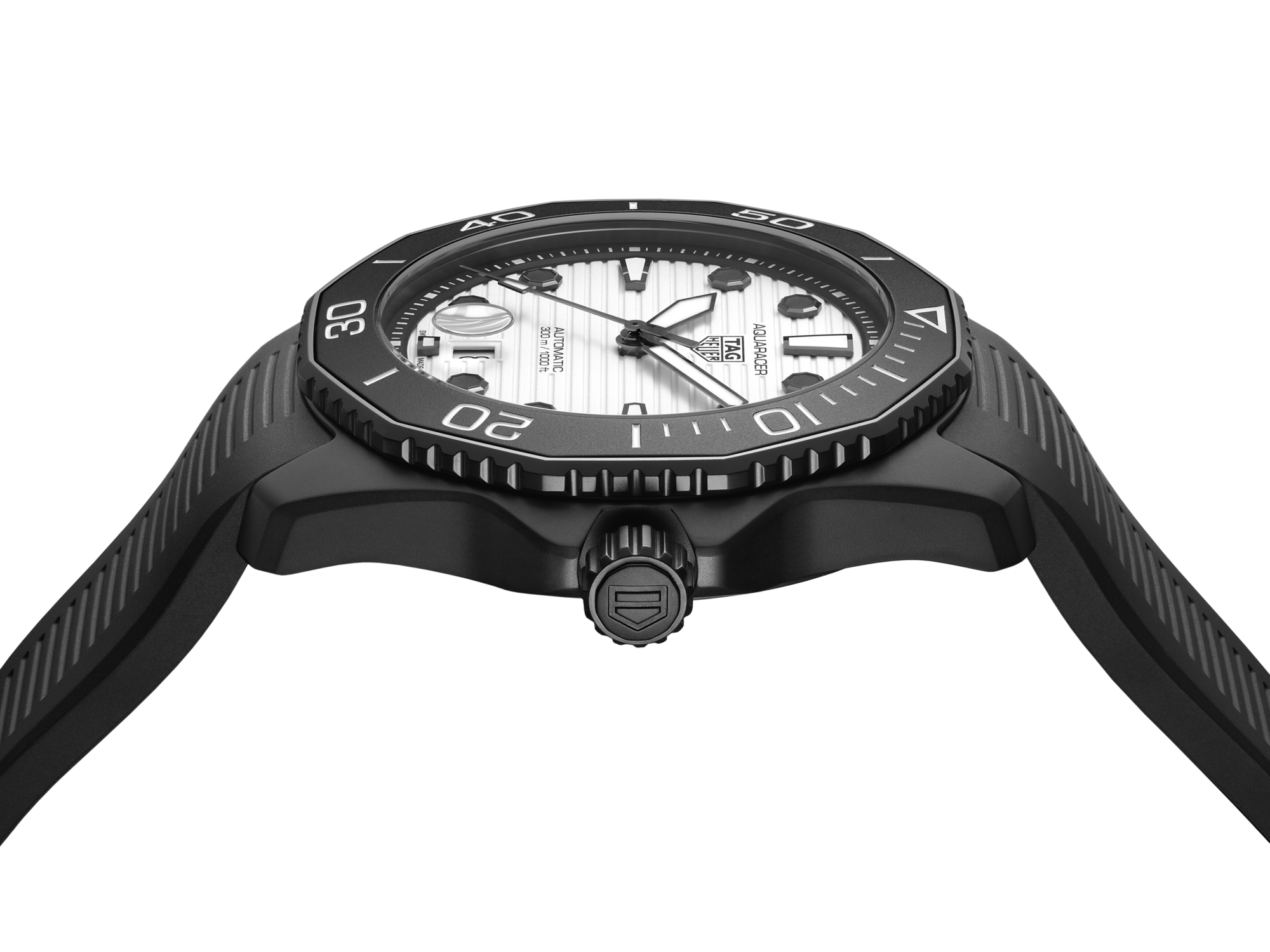 A dive watch with unique style. Bold and stealthy, the automatic Calibre 5-powered Aquaracer Nightdiver dive watch features a 43mm steel case coated with black DLC. The matching steel bezel coated with black DLC sports ceramic inserts. Rugged and reliable in all conditions.