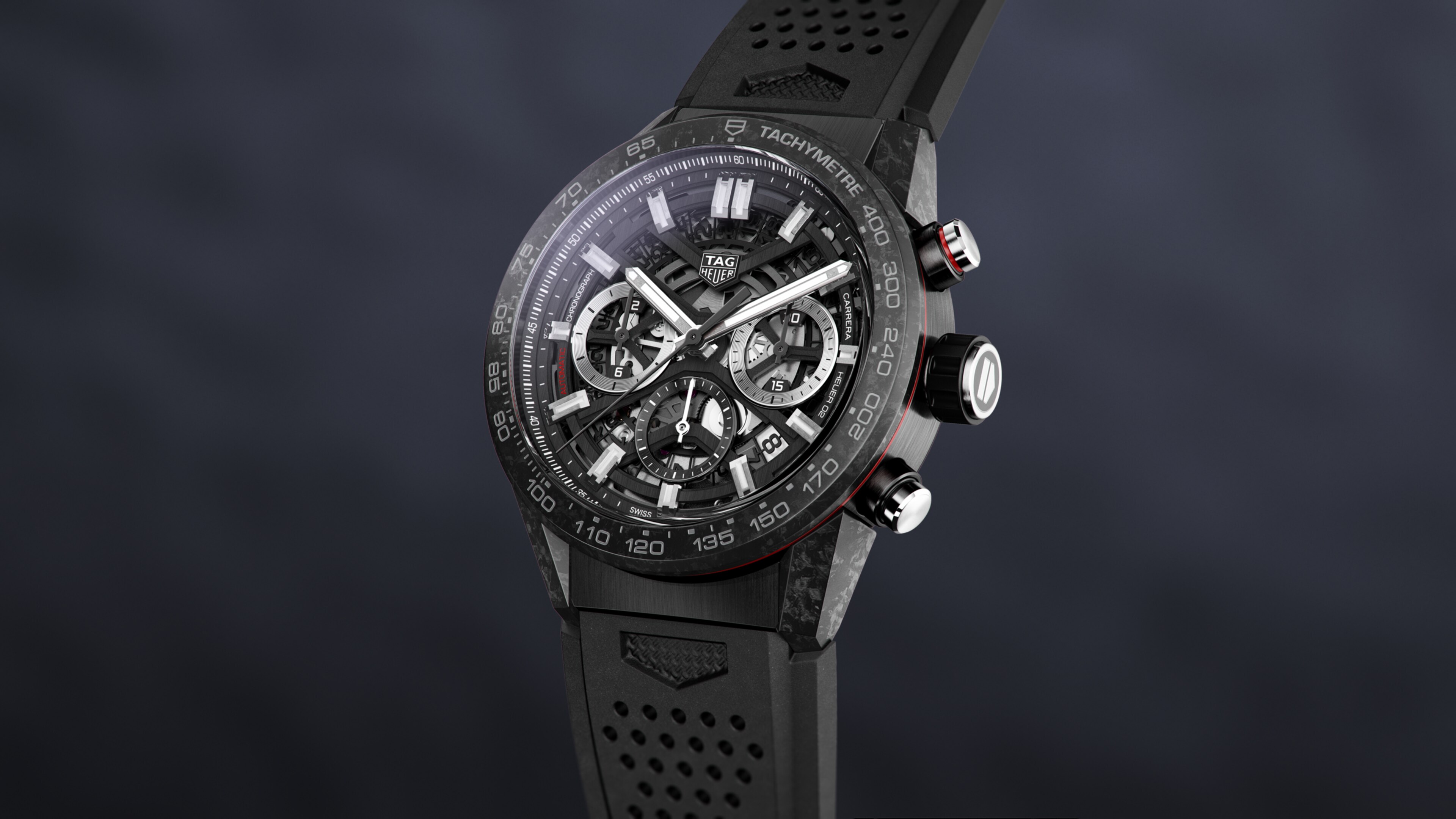 Automatic, 43 mm, Steel & carbon CBG2016.FT6143A black TAG Heuer Carrera built with the leading-edge materials of motor-sports: super-resistant carbon fiber for the tachymeter bezel and the iconic TAG Heuer Carrera lugs. Black PVD stainless steel is used for the 43mm case. Inside, the manufacture movement Heuer 02, with a stunning 80 hours power reserve.